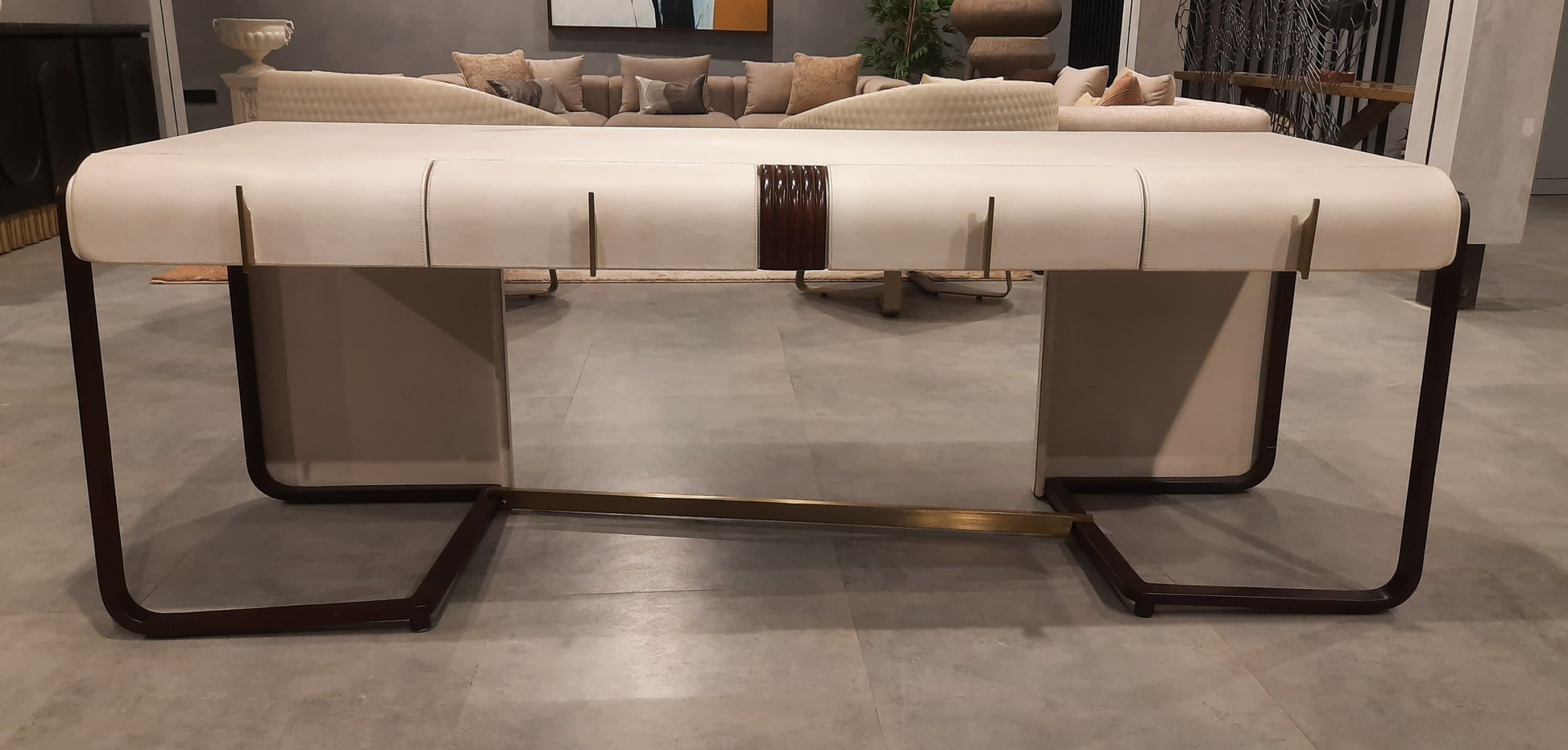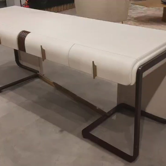 Study table with wood legs and leatherette finish drawers